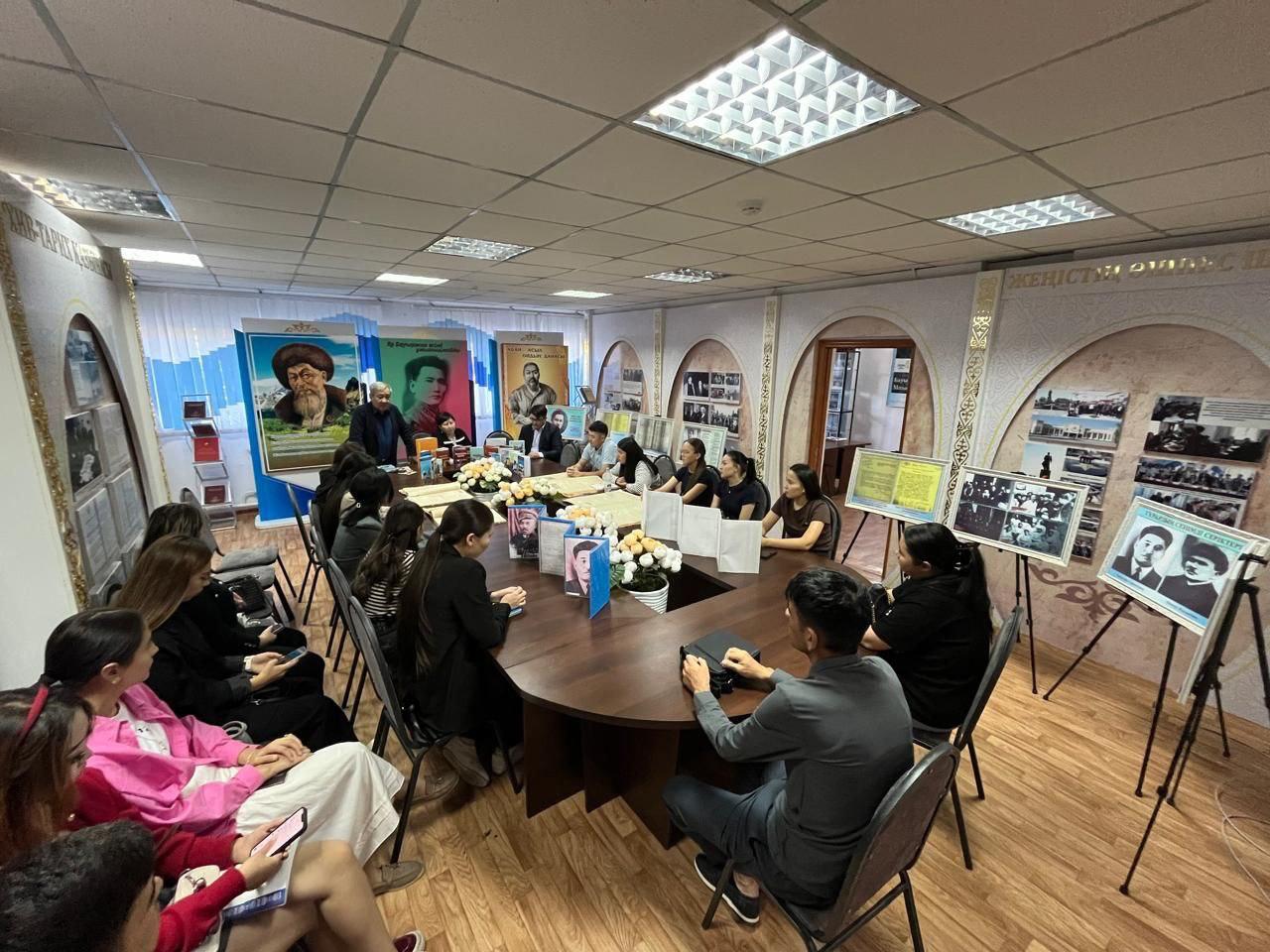 Дөңгелек үстел барысында облысқа танымал «Ақ жол» газетінің тілшісі, ардагер Ә. Баққараұлы мен облыстық архивтің бөлім басшысы С.Зейнуллаұлы, университет доценті, т.ғ.к., Ж.М. Сейткулова студенттерге Жамбыл облысының құрылу тарихымен қоса өңірде басшылық жасаған қызметкерлердің өмірі мен жасаған еңбектері, облыстағы сол уақыттардағы әлеуметтік-экономикалық және мәдени даму үдерісі айтылып,архивтегі фото шежірелер негізімен толықтырылып көрсетілді. Бүгінде баға жетпес тарихи құнды жазба деректер қорын құрайтын 1939-1950 жылдардағы облыста шыққан газет материалдары тізбесімен студенттер танысты.